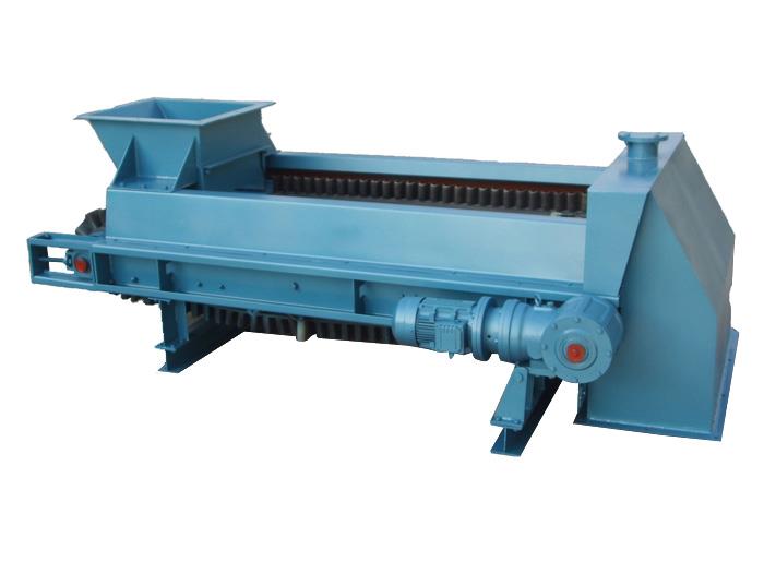 所以,一般定量給料機(jī)盡量采用平皮帶加擋料板的方式。只有在自由流動性較好的粉狀物料等特定使用場合才有需要采用擋邊皮帶。